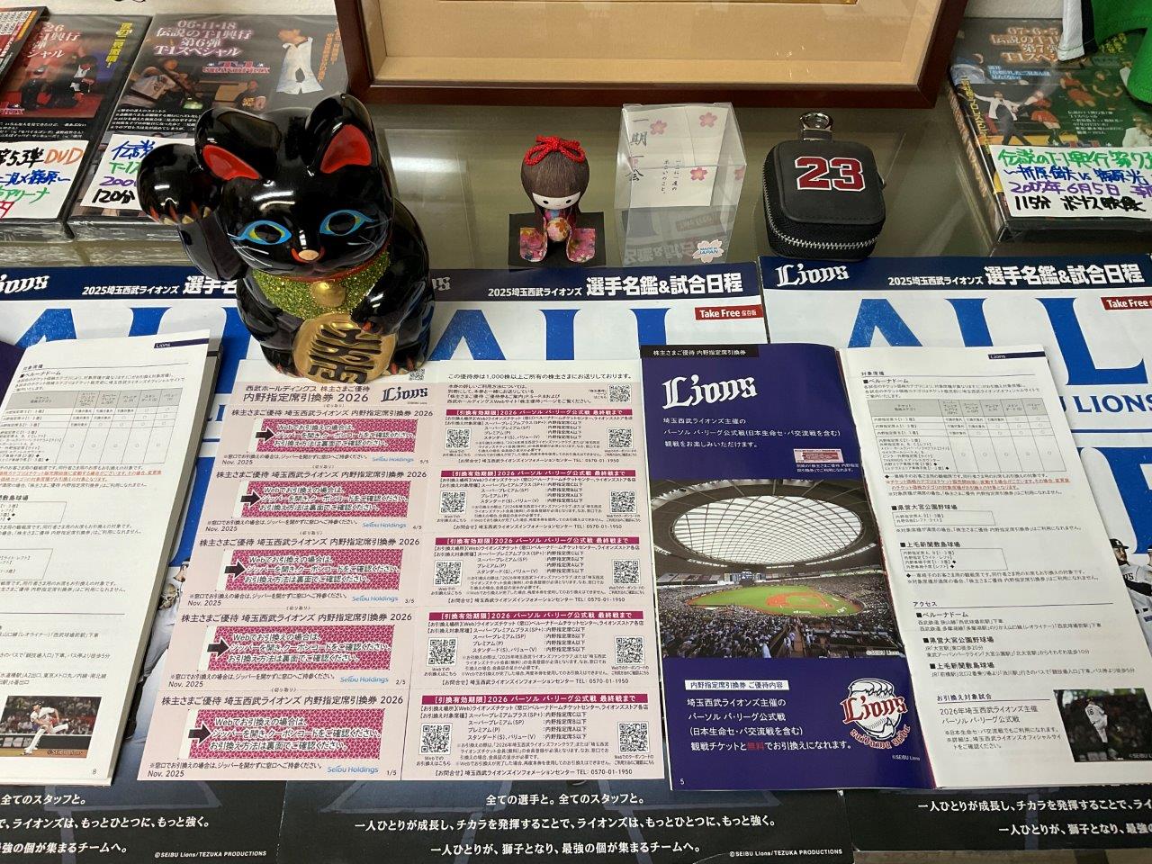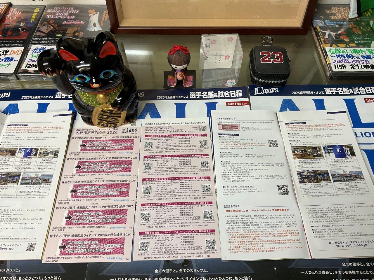 | 販売中 | 埼玉西武ライオンズ 株主優待券 内野指定席引換券 | 2,500円(残10枚) | 2025年11月発行分 有効期限 2026年最終戦まで Web、窓口、いずれか選択 引換えの詳細は補足情報へ |