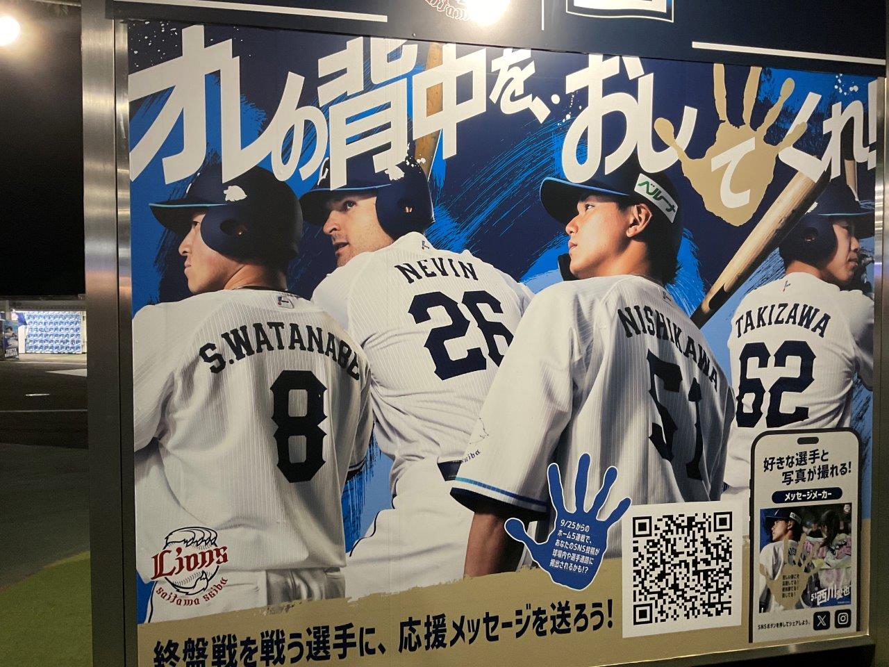 駅の推し獅子2024 松井稼頭央監督、栗山巧、源田壮亮、平良海馬、隅田知一郎、古市尊、成田晴風、伊藤翔、中村裕太 等身大パネルは1部の駅 2023年2駅担当は8選手、24年源田のみ