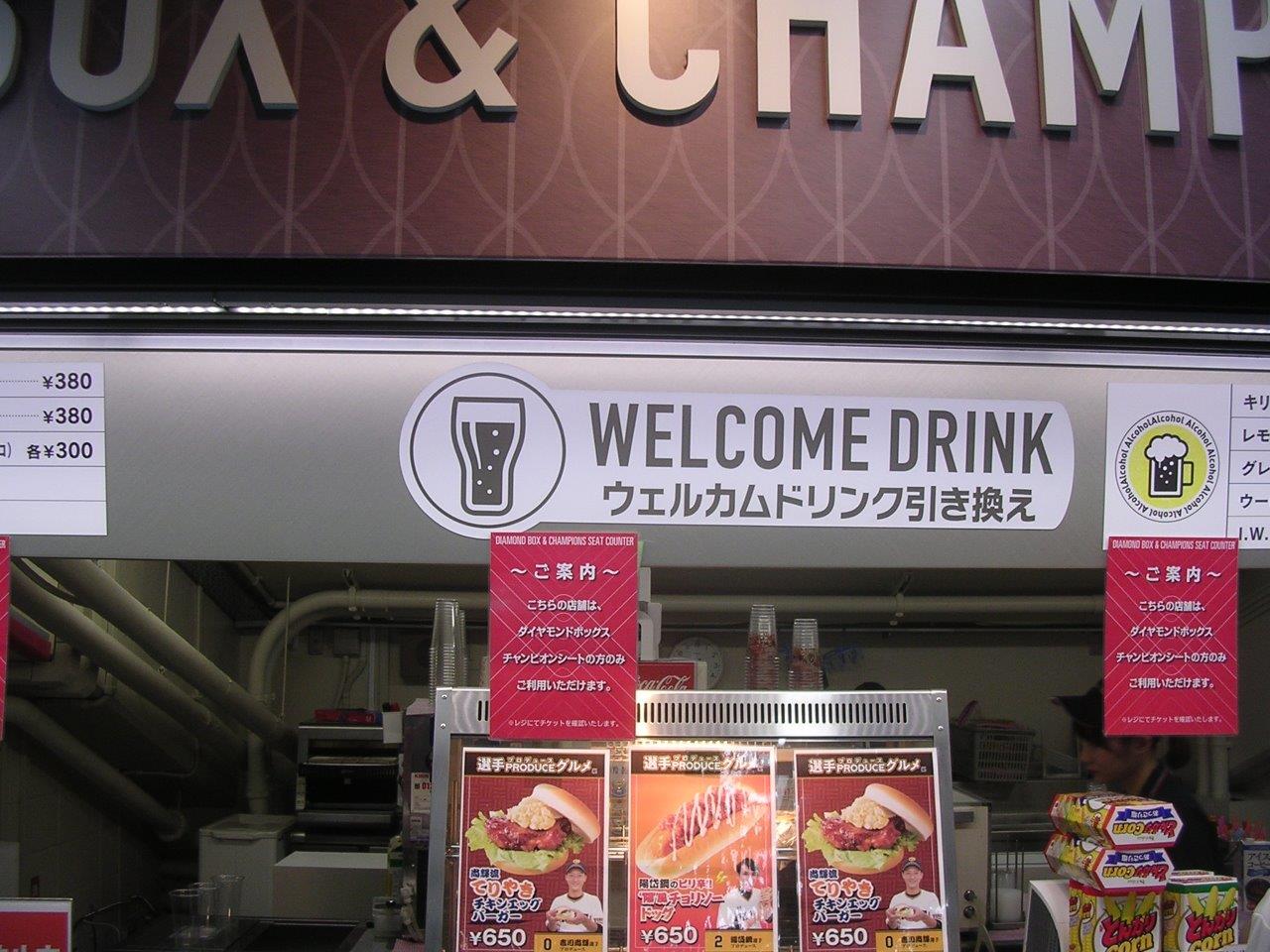| 販売中 | プレミアムラウンジC 3塁 32通路 1列(通路側・2席) | 4,000円(×4連番・偶数枚売り) | バルコニー席 33ゲート 一般価格 5,000円 ラウンジ内ではアルコールを含む各種ドリンクが飲み放題 ビュッフェなしのチケット |