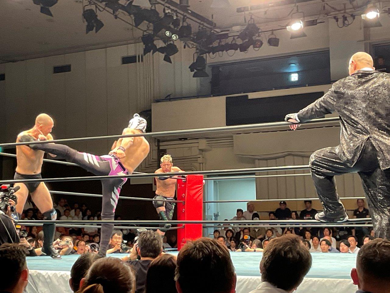 ストロングスタイルプロレス34新間寿追悼セレモニー 初代タイガー佐山聡、前田日明、藤原喜明の3ショット 間下隼人は大仁田厚に痛い敗戦 黒子に徹した笹崎勝己さん