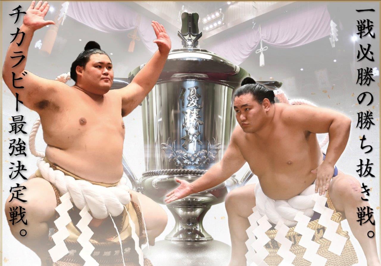 他の2力士に連勝しなければならない過酷な優勝決定巴戦。それは、思わず手に汗にぎる瞬間です。
