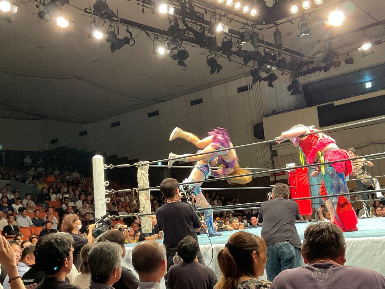 桜木かなこさんはスーパー・タイガーTシャツを着て、闘魂(ストロングスタイルプロレス30)を間近で観て感銘を受ける 平井丈雅代表、桜木裕司選手、間下隼人選手の謙虚さに感動
