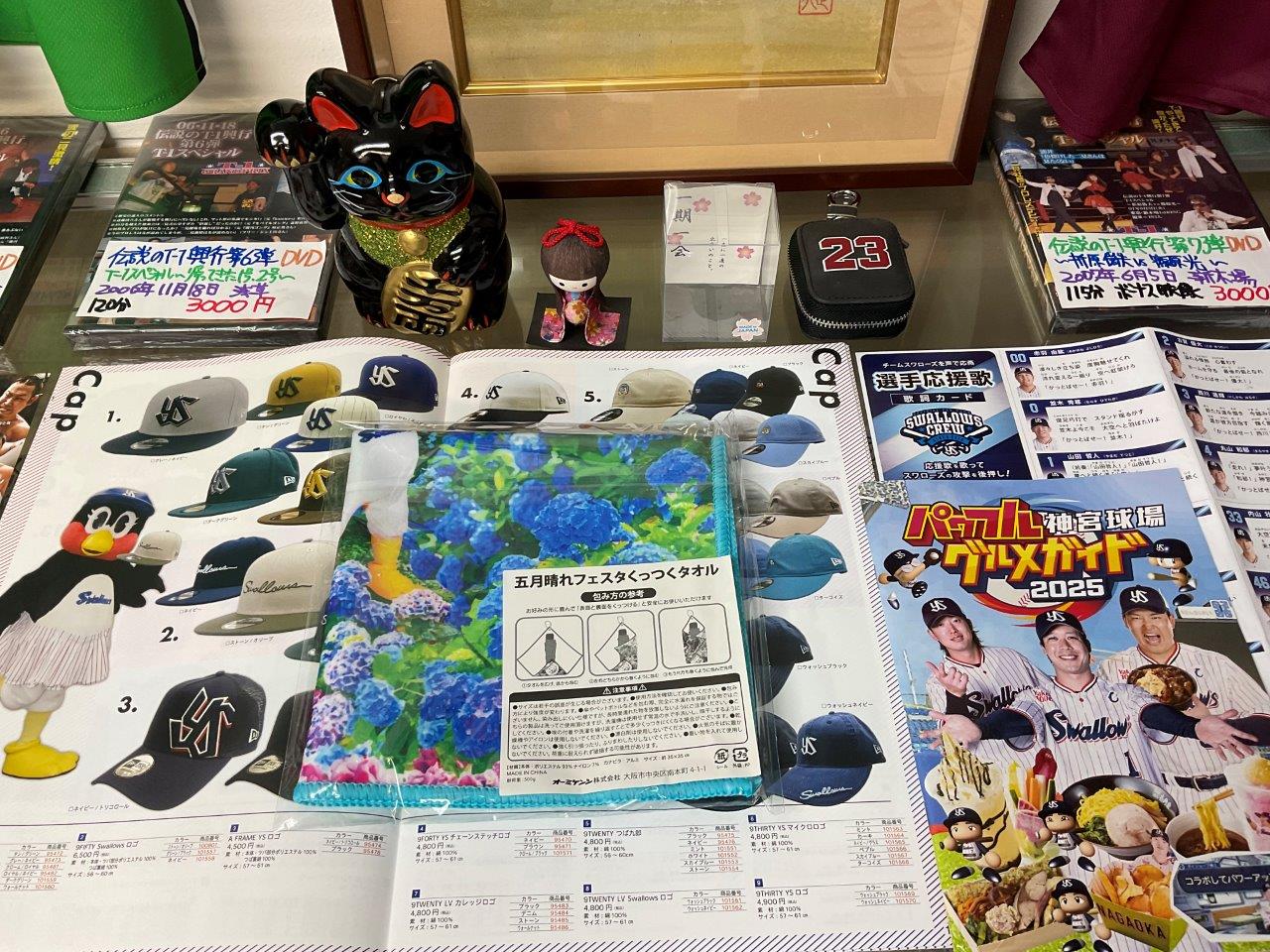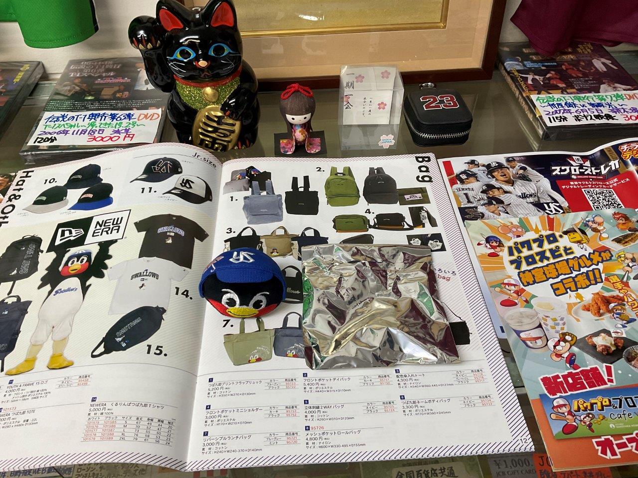 入荷したのは、くっつくタオル、つば九郎ぬいリング(完売)。