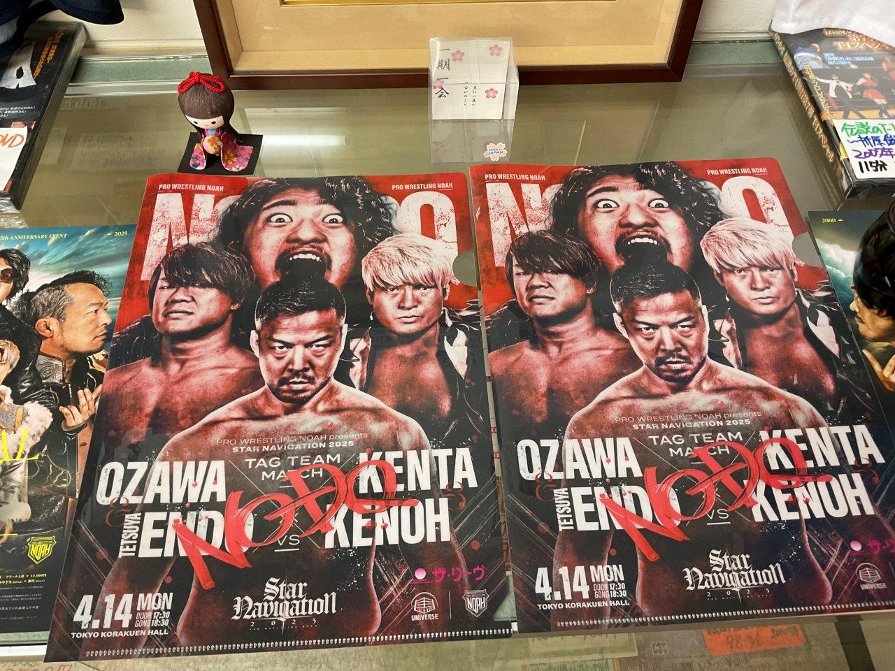 2025年4月14日「プロレスリング・ノア STAR NAVIGATION 2025」後楽園ホールの来場者に、ザ・リーヴ提供・KENTA、OZAWA、遠藤哲哉、拳王のクリアファイルをプレゼントした。
