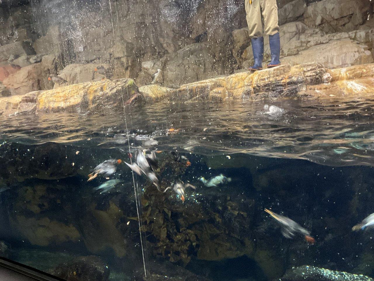 夏の暑さ対策や繁殖への取組みのため、ミナミイワトビペンギンとオウサマペンギンはモニターを通した展示となる時期があります。